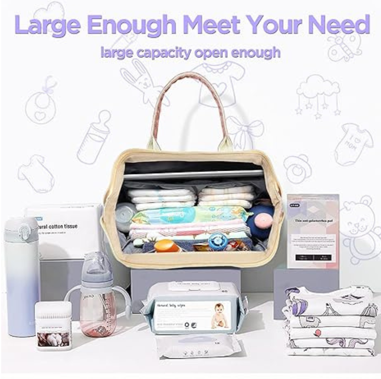 Bag opens wide and packs big! Perfect for organizing all your baby essentials without ever feeling cramped.